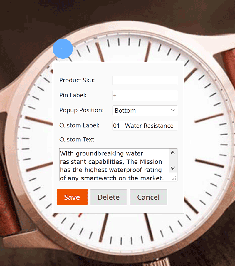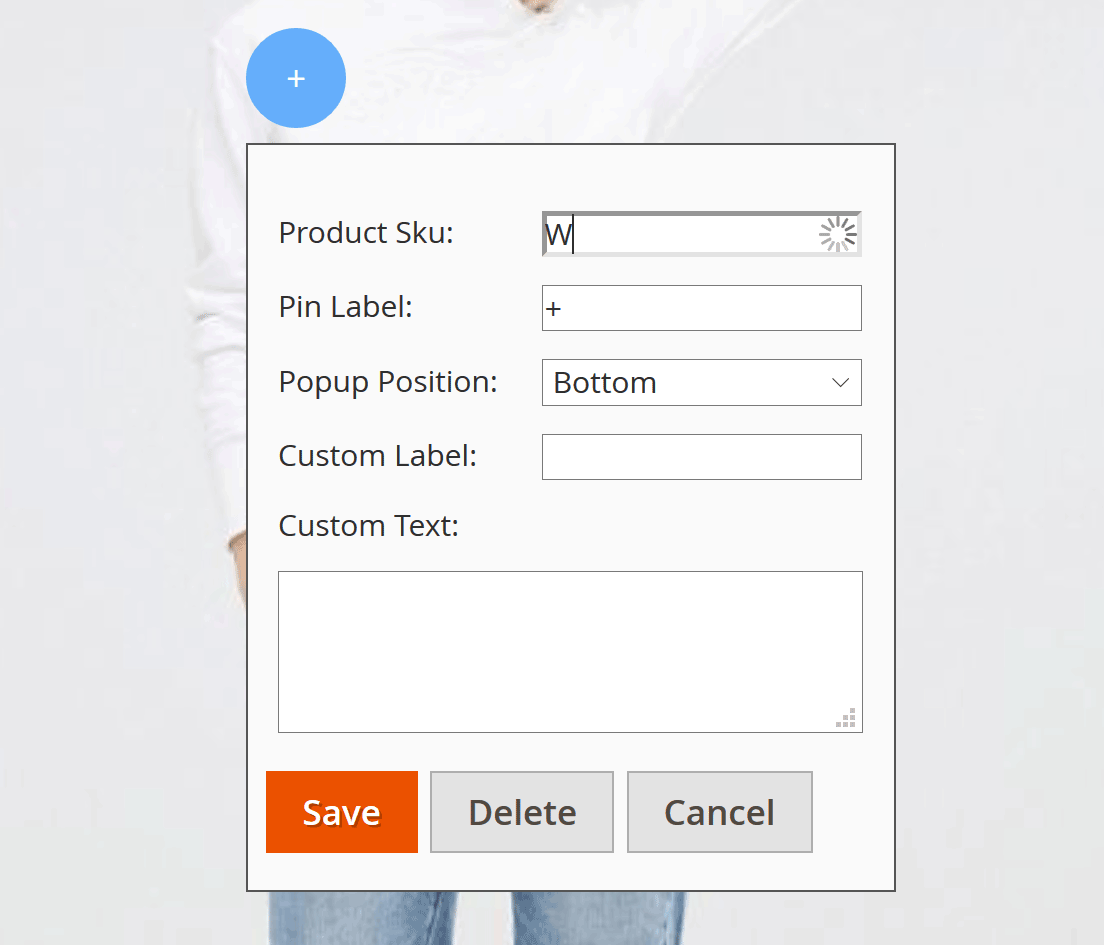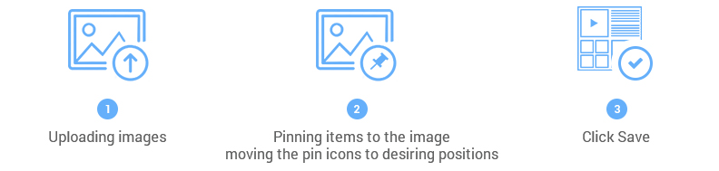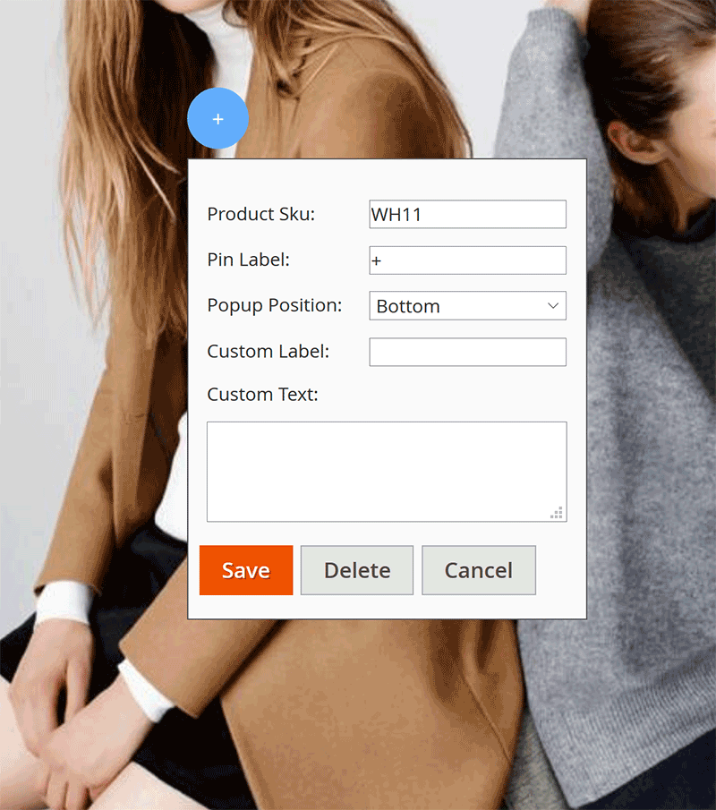 Besides, admin can edit the label of each pin (or Product Price will be automatically assigned to label) and change the position of the image popup upon customer’s click on the icon.