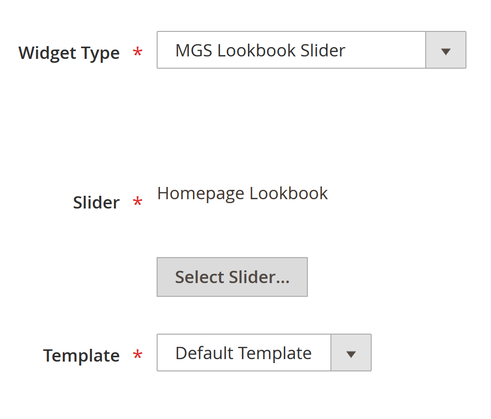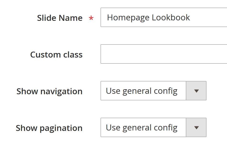 Configuration is divided into 2 main parts. General configurations will be applied to both lookbook and slider item, and below ones are used for only slider.